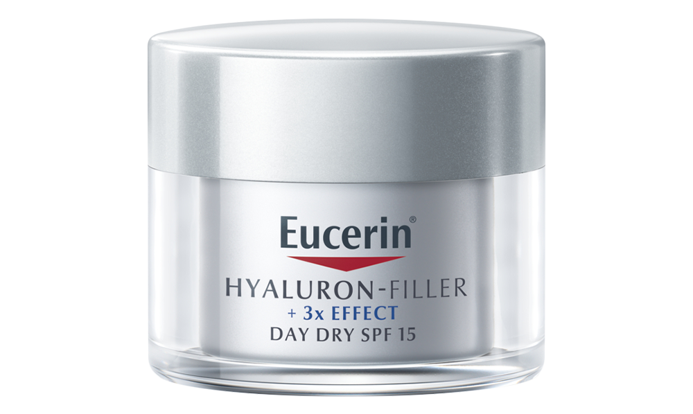Eucerin Hyaluron-Filler dienas krēms ar SPF 15 un 3x efekta formulu neitralizē šo procesu: