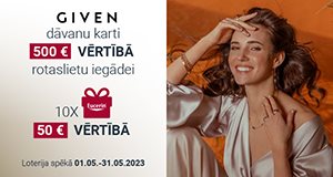 Galvenā balva: GIVEN DĀVANU KARTE rotaslietu iegādei 500 € vērtībā