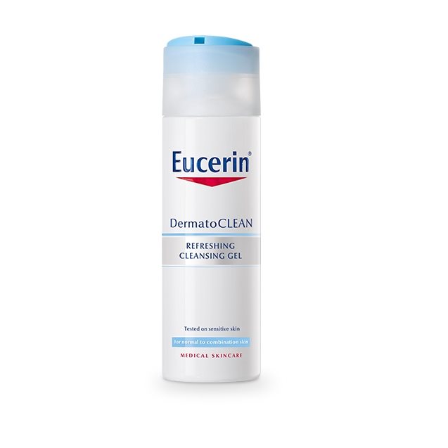 Izmēģiniet Eucerin DermatoCLEAN atsvaidzinošo attīrošo želeju.