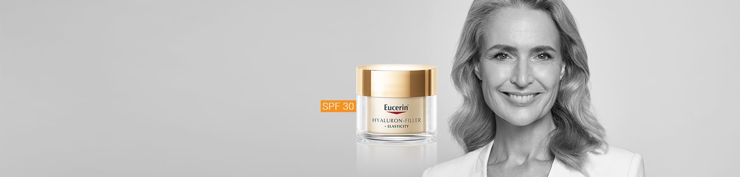 Eucerin Hyaluron-Filler + Elasticity ir īpaši izstrādāts, lai samazinātu dziļas grumbas, vecuma plankumus, uzlabotu ādas elastību un veicinātu ādas mirdzumu. Eucerin novatoriskā augstas un zemas molekulmasas hialuronskābes kombinācija acīmredzami piepilda dziļas grumbas no iekšpuses, savukārt jaudīgā arktīna un kreatīna (Kolagēna-Elastīna kompleksa) kombinācija stimulē kolagēna ražošanu un uzlabo ādas elastību. Visbeidzot, klīniski pierādītais tiamidols samazina vecuma plankumu parādīšanos, sniedzot pirmos redzamos rezultātus 2 nedēļu laikā.Eucerin Hyaluron-Filler+Elasticity līnijas sortimentā ietilpst: dienas krēmi ar UVA un UVB aizsardzību (gan SPF 30, gan SPF 15), acu krēms un nakts krēms. Tos papildina mitrinošs serums, kas īpaši efektīvi samazina vecuma plankumu parādīšanos uz nobriedušas ādas. Pieejams arī roku krēms.