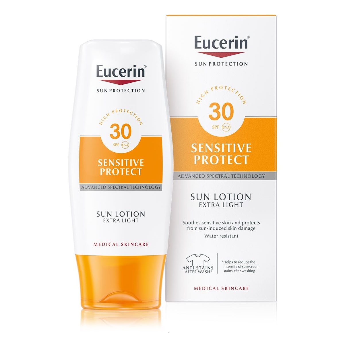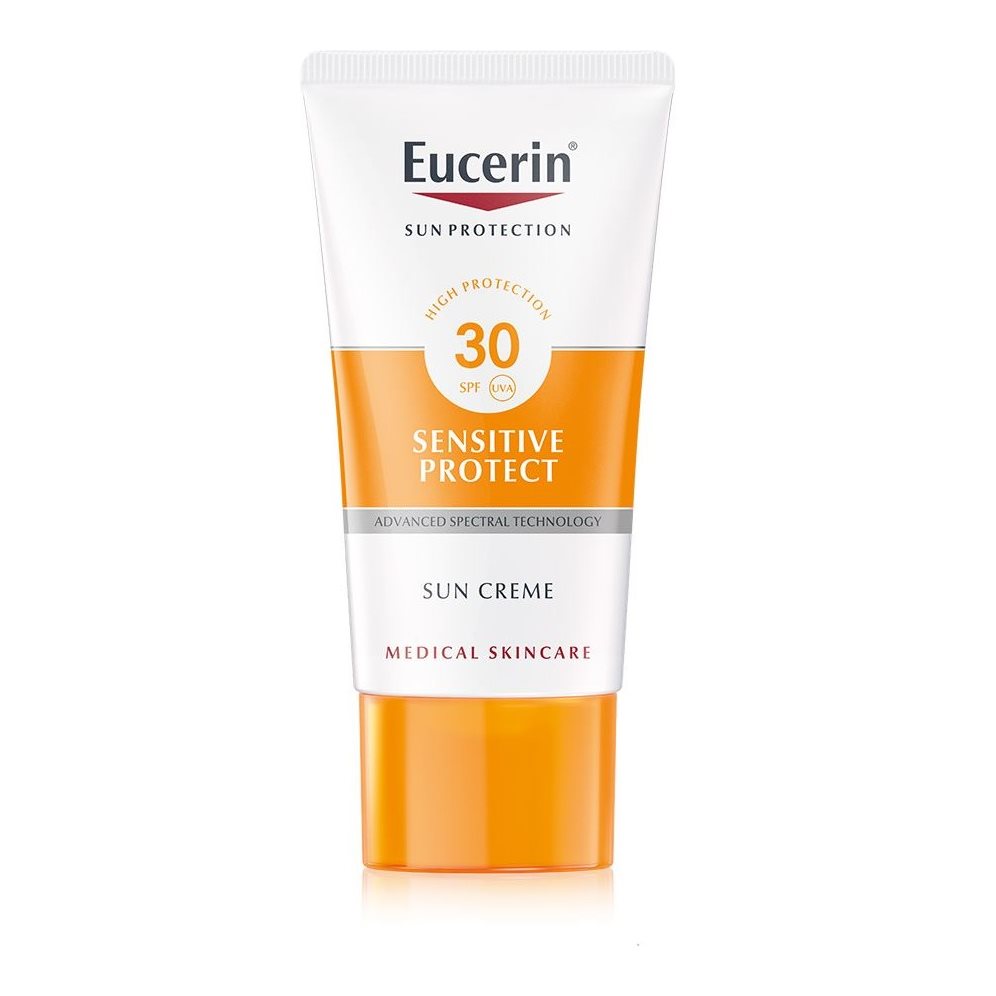 Jūs meklējat sauļošanās losjonu jutīgai ķermeņa ādai: izmēģiniet Eucerin Sun Lotion Extra Light Sensitive Protect SPF 50+ vai SPF 30 īpaši maigo sauļošanās aizsarglosjonu jutīgai ādai. Abi SPF līmeņi ir piemēroti arī atopiskai ādai.