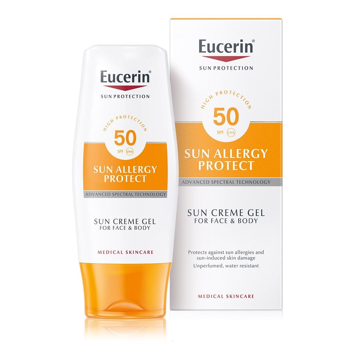 Jūsu ādai ir tendence uz saules izraisītām alerģijām, piemēram, polimorfo fotodermatozi: izmēģiniet Eucerin Sun Creme-Gel Sun Allergy Protect SPF50 vai SPF25 sauļošanās želejveida krēmu aizsardzībai pret alerģiju.