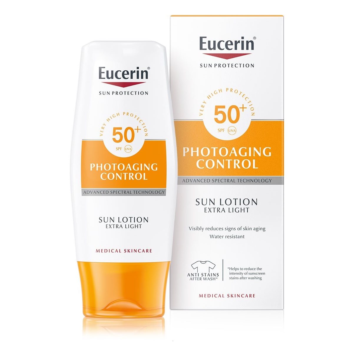 Jūs meklējat sauļošanās līdzekli, kas aizsargā ādu, vienlaikus samazinot fotonovecošanas pazīmes: izmēģiniet Eucerin Sun Lotion Extra Light Photoaging Control SPF 50+ vai SPF 30.